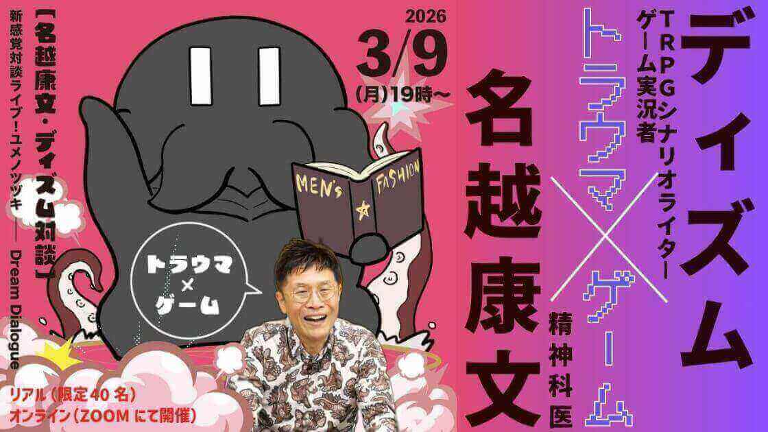 【リアル参加】2026年3月9日開催:トラウマ×ゲーム(名越康文・ディズム対談)(ユメノツヅキ)