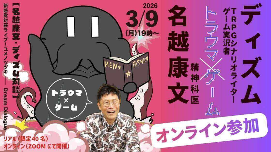 【オンライン参加】2026年3月9日開催:トラウマ×ゲーム(名越康文・ディズム対談)(ユメノツヅキ)