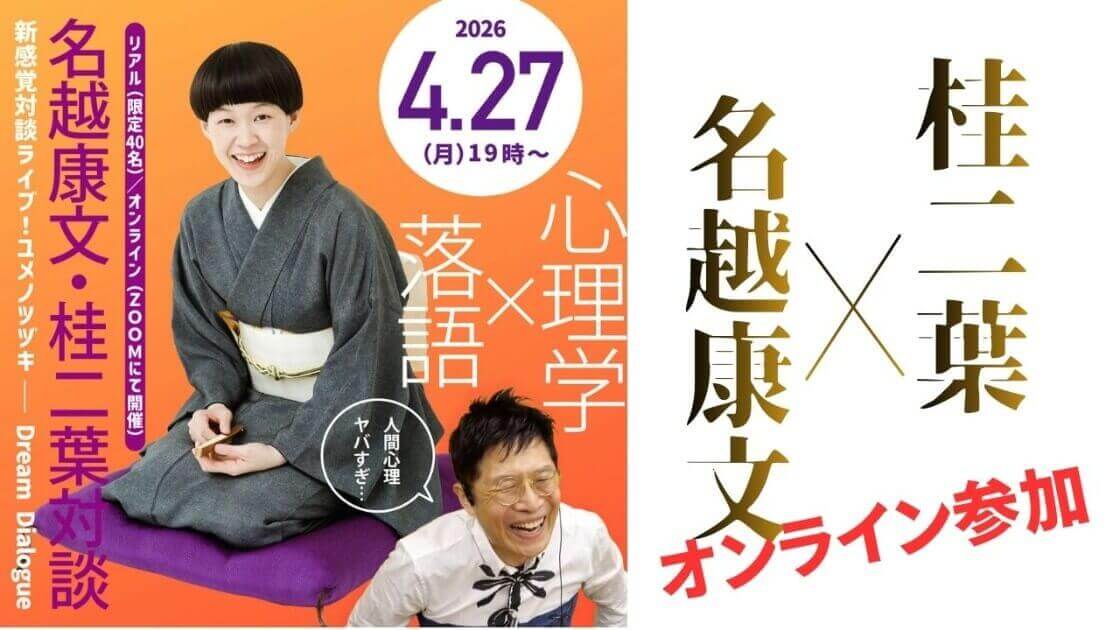 【リアル参加】2026年4月27日開催:心理学×落語(名越康文・桂二葉対談)(ユメノツヅキ)