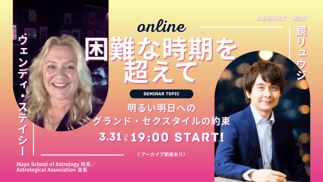 【一般】「困難な時期を超えて」英国占星術協会会長ウェンディ・ステイシー【2026年3月31日開催】(鏡リュウジ)